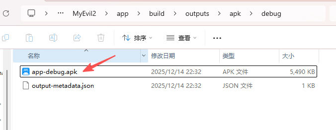 我们需要app-debug.apk,这里封装的是主程序,还有另一个带test的是测试用的,李米娜封装的是测试代码