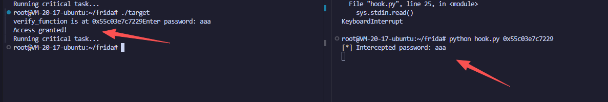 脚本的流程大概是:先attach target进程并将frida的动态库注入到目标进程中,session.create_script就是创建一个js脚本并在目标进程的地址空间内执行;js脚本就是直接将对应的目标函数进行替换,Interceptor.replace(目标地址, 新函数),new NativeCallback的后两个参数,int表示返回类型,['pointer']表示参数列表
