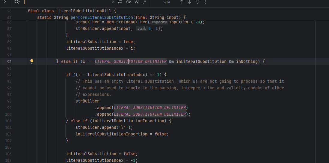 在之前的文章中是利用||来绕过对$符号后面紧跟{的判断,因为LiteralSubstitutionUtil#performLiteralSubstitution这个函数会将||置空,不过在3.0.15的时候就对这个函数进行了修复