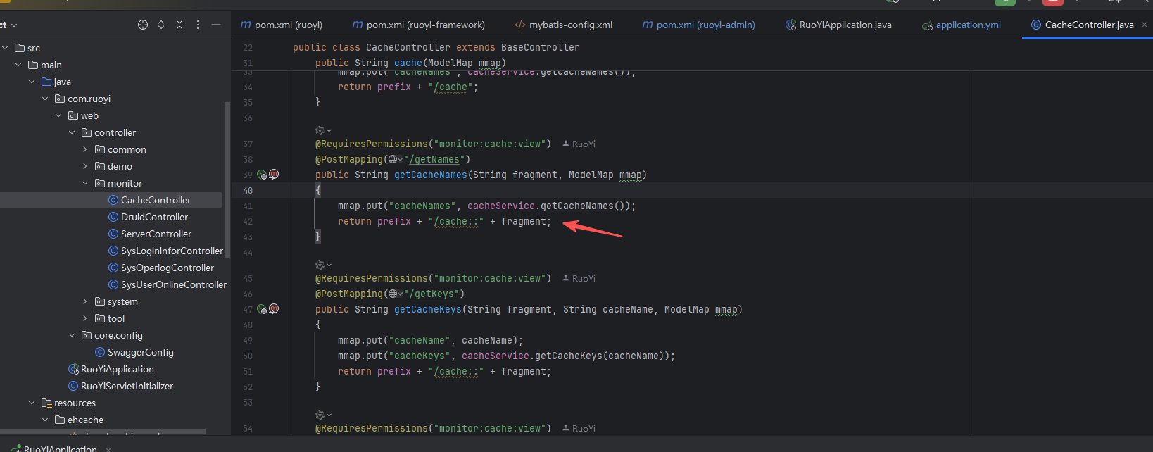 漏洞代码代码在ruoyi-admin模块下的com.ruoyi.web.controller.monitor处